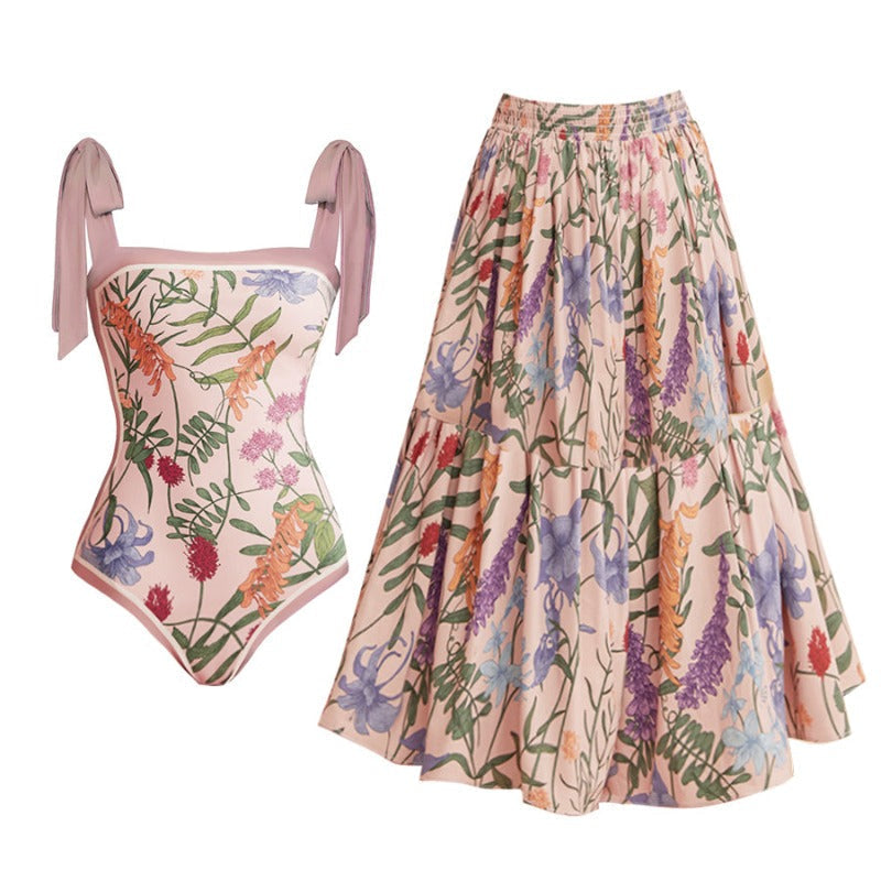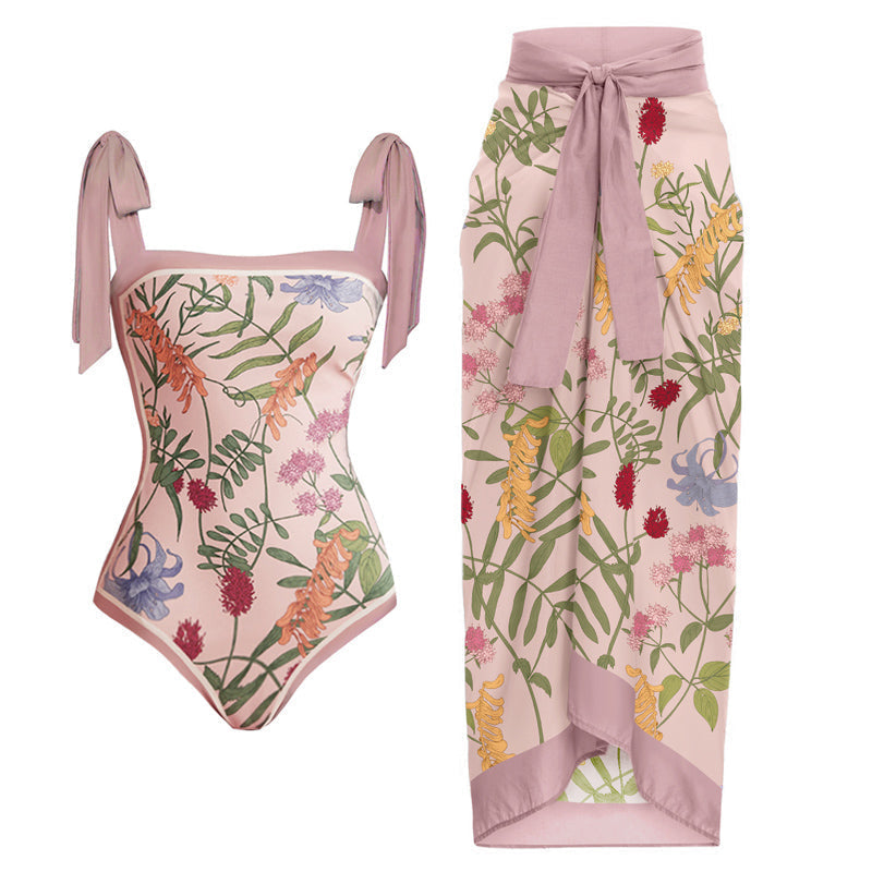 Vintage Print One Piece Swimsuit Set
